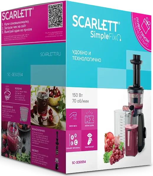 Соковыжималка SC-JE50S54 – наслаждайтесь свежевыжатыми соками и полезными сорбетами круглый год. Резервуар для сока – 600 мл, резервуар для мякоти – 1200 мл. Технология «Антикапля» и щетка для очистки фильтра помогут сохранить чистоту кухни и техники. Безопасность использования в работе обеспечит функция «автоматическая блокировка при неправильной сборке».