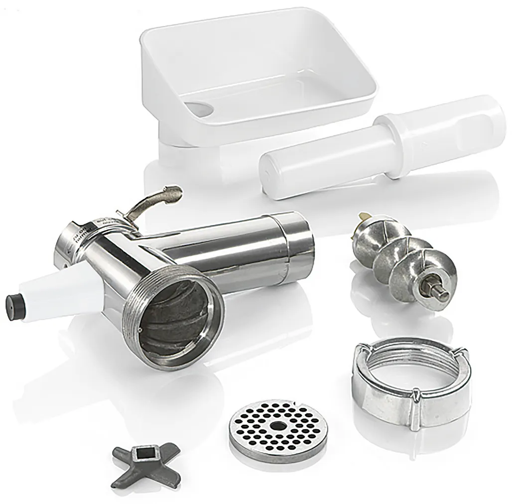 | Насадки комбайна | венчик для взбивания/ венчик для жидкого теста/ насадка для теста/ мясорубка/ насадка блендер/ двусторонняя терка/ двусторонняя шинковка/ терка для сыра, шоколада, орехов |