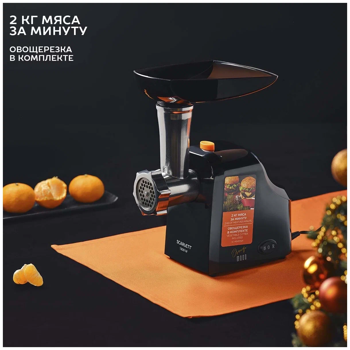 Мясорубка Scarlett SC-MG45M24 – это прибор высокой производительности для измельчения сырых и обработанных продуктов, натирания и шинковки, а также приготовления колбас и кеббе. С помощью этой модели вы сможете легко и быстро переработать даже жилистое мясо или твёрдые овощи.