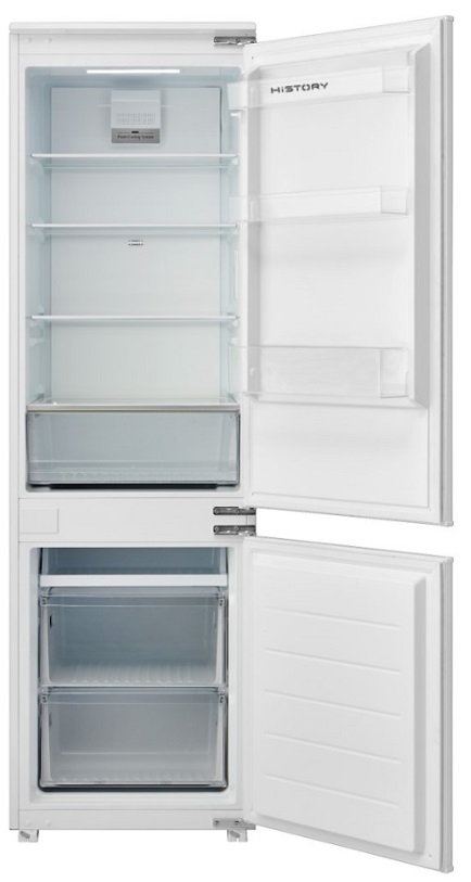 Встраиваемый двухкамерный холодильник HiSTORY BRB 1780M объемом 266 литров разработан для установки в нише кухонной мебели.