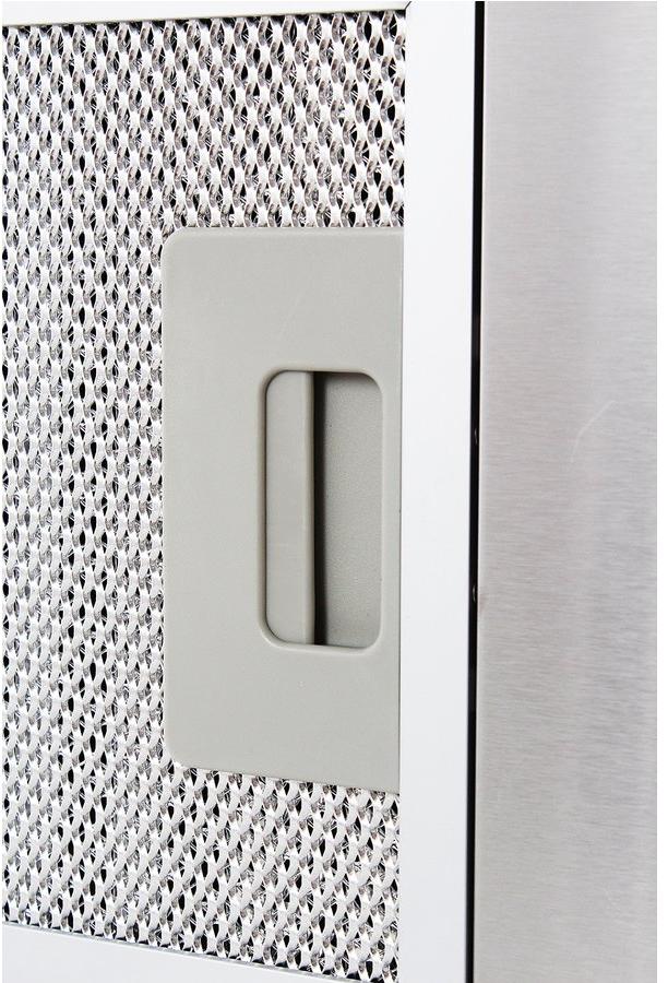 Элементы управления расположены на нижней панели, благодаря этому фасад навесного шкафа остается нетронутым. Вытяжка подходит для использования с варочными панелями шириной до 60 см.