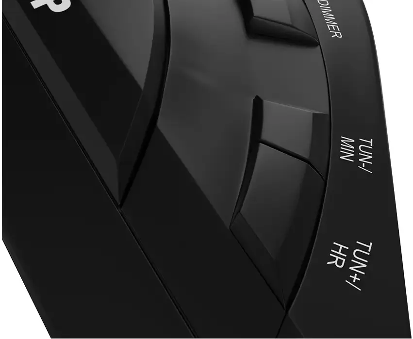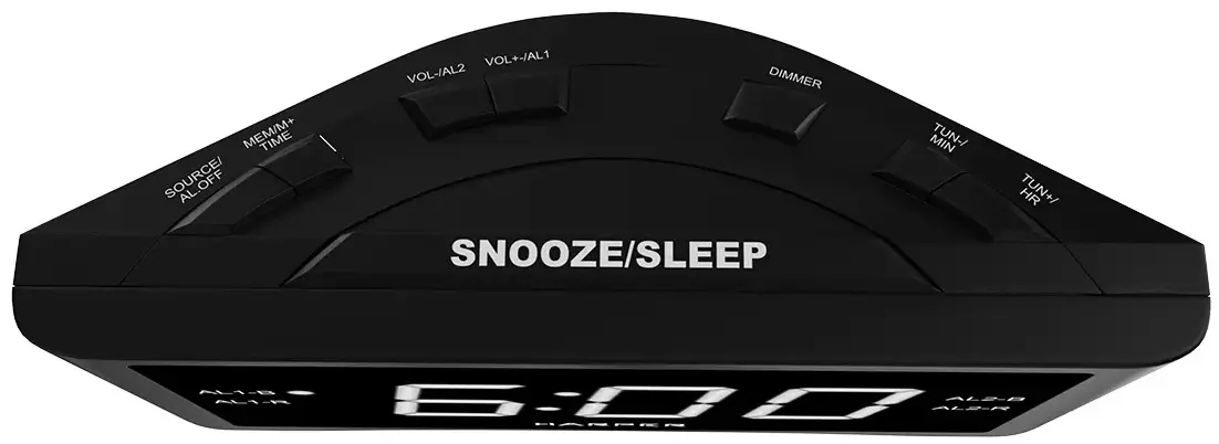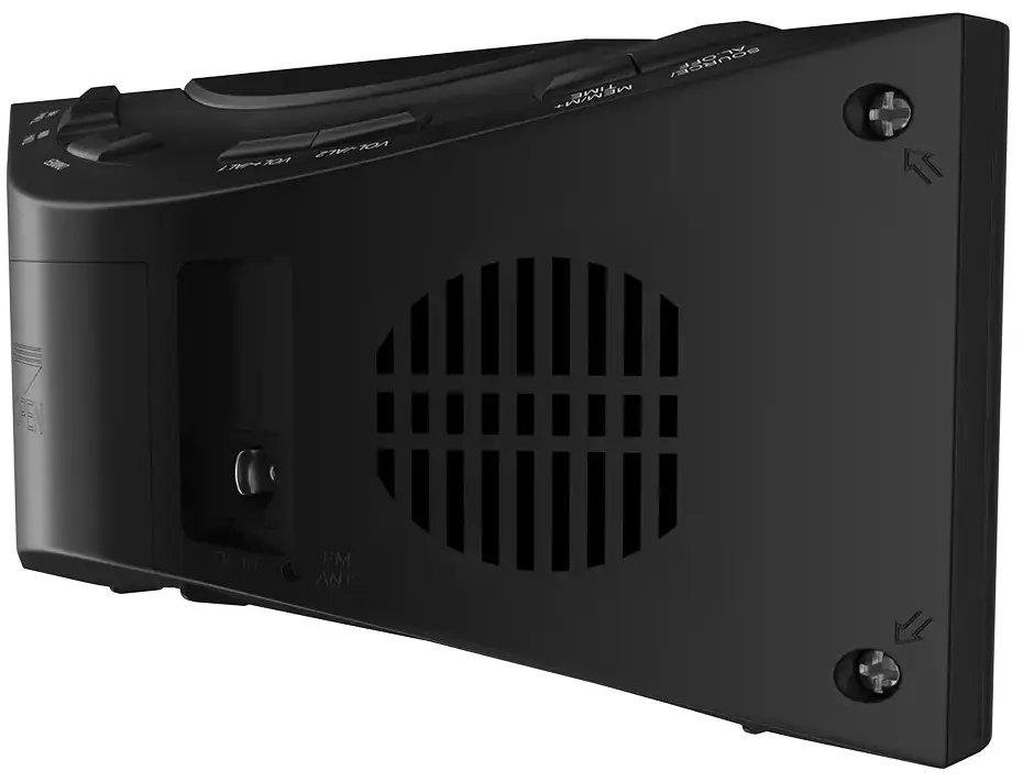 Эфиром текущей радиопередачи можно заменить стандартный сигнал любого из двух независимых будильников. Чтобы не настраивать часы после каждого отключения от сетевого питания, просто установите батарейки ААА в специальный отсек.