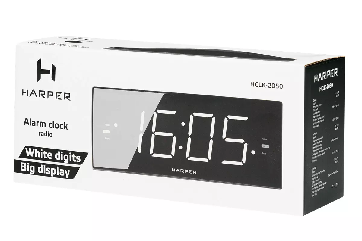 Стильный, яркий и функциональный настольный радиобудильник. Плоский дизайн и черно-белое оформление Harper HCLK-2050 отлично сочетаются с любым интерьером. Подсветка легко регулируется до нужного уровня, белый свет не напрягает глаз.