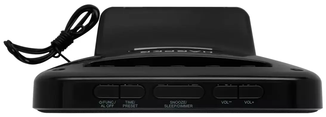 Радиочасы Harper HCLK-2060 обеспечат вам не только комфортный подъем под музыкальное сопровождение любимой радиостанции, но и предоставят ряд полезных функций: два независимых будильника, функция засыпания под радио, регулируемый LED светильник, который может работать как ночник, крупные светодиодные цифры белого цвета для отображения времени с регулировкой яркости.
