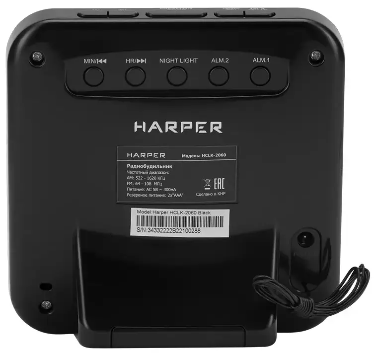 Плюс, радиобудильник Harper HCLK-2060 запоминает до 10 станций AM и до 10 станций FM-диапазона. На случай отключения сети можно установить батареи ААА, они будут использоваться для сохранения настроек.