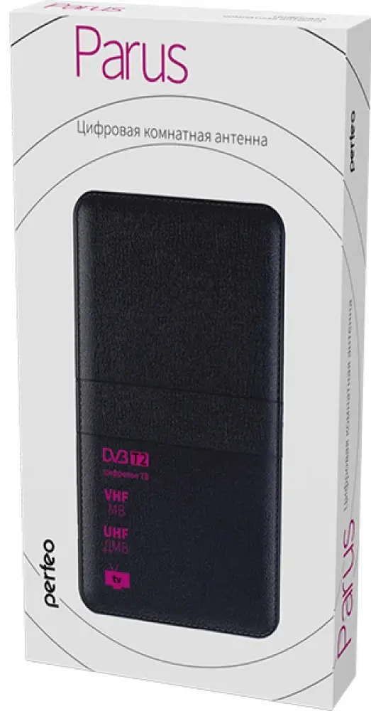 Антенна принимает сигналы аналогового и цифрового телевидения формата DVB-T2. Антенна PF-TV1015 «PARUS» помещена в сверхтонкий корпус из радиопрозрачного полимера.