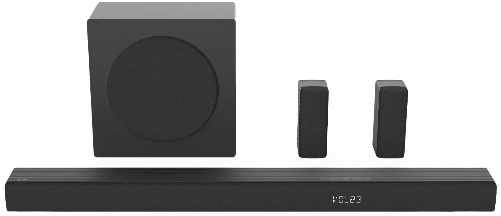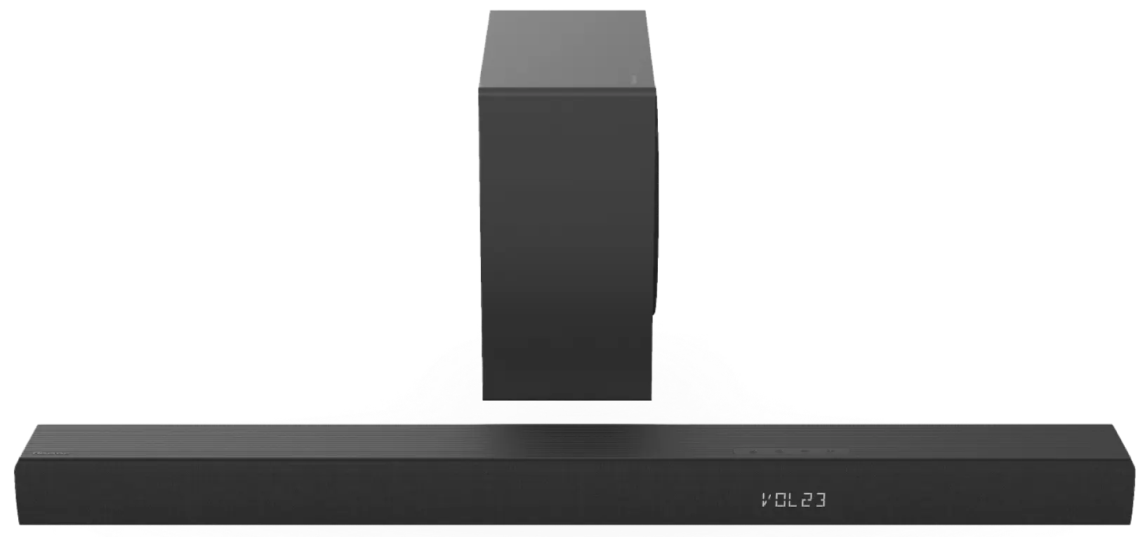 Меню настроек саундбара отображается на экране ТВ, поэтому управлять звучанием саундбара Hisense можно также легко при помощи пульта от телевизора Hisense.