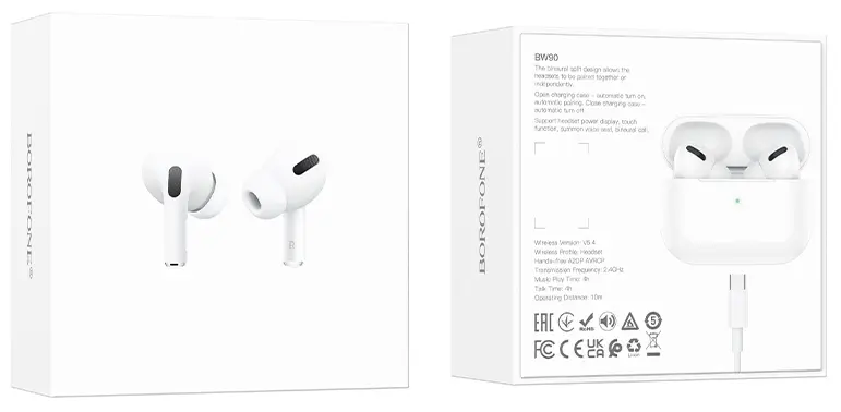 Зарядный кейс с индикатором уровня заряда продлевает время автономной работы, позволяя наслаждаться любимым контентом без лишних ограничений. Borofone BW90 станут вашим надежным спутником каждый день — дома, на прогулке или в дороге.