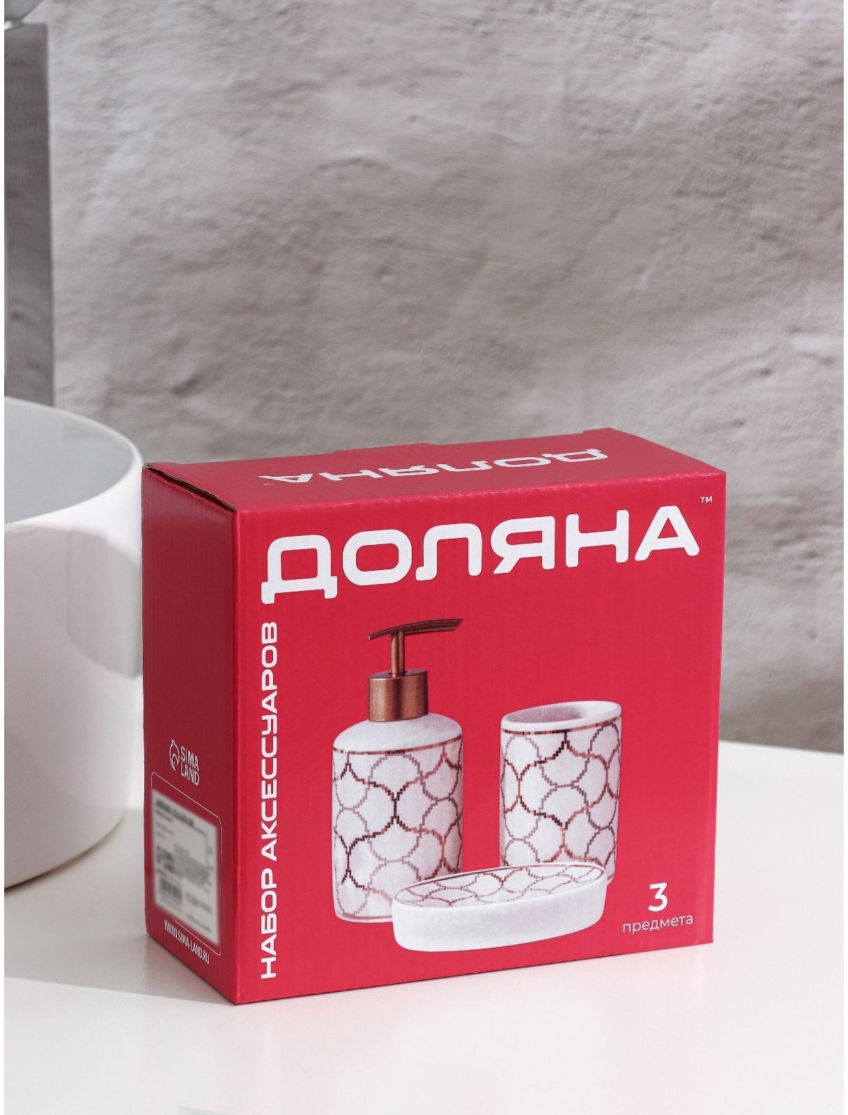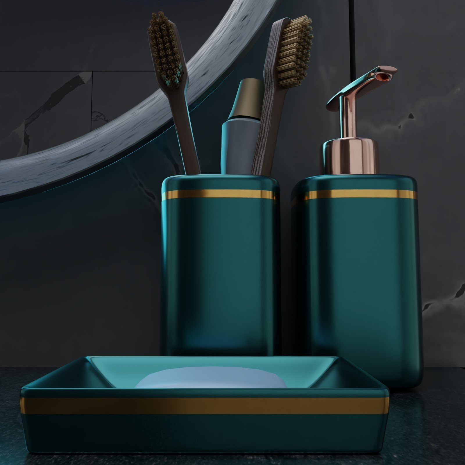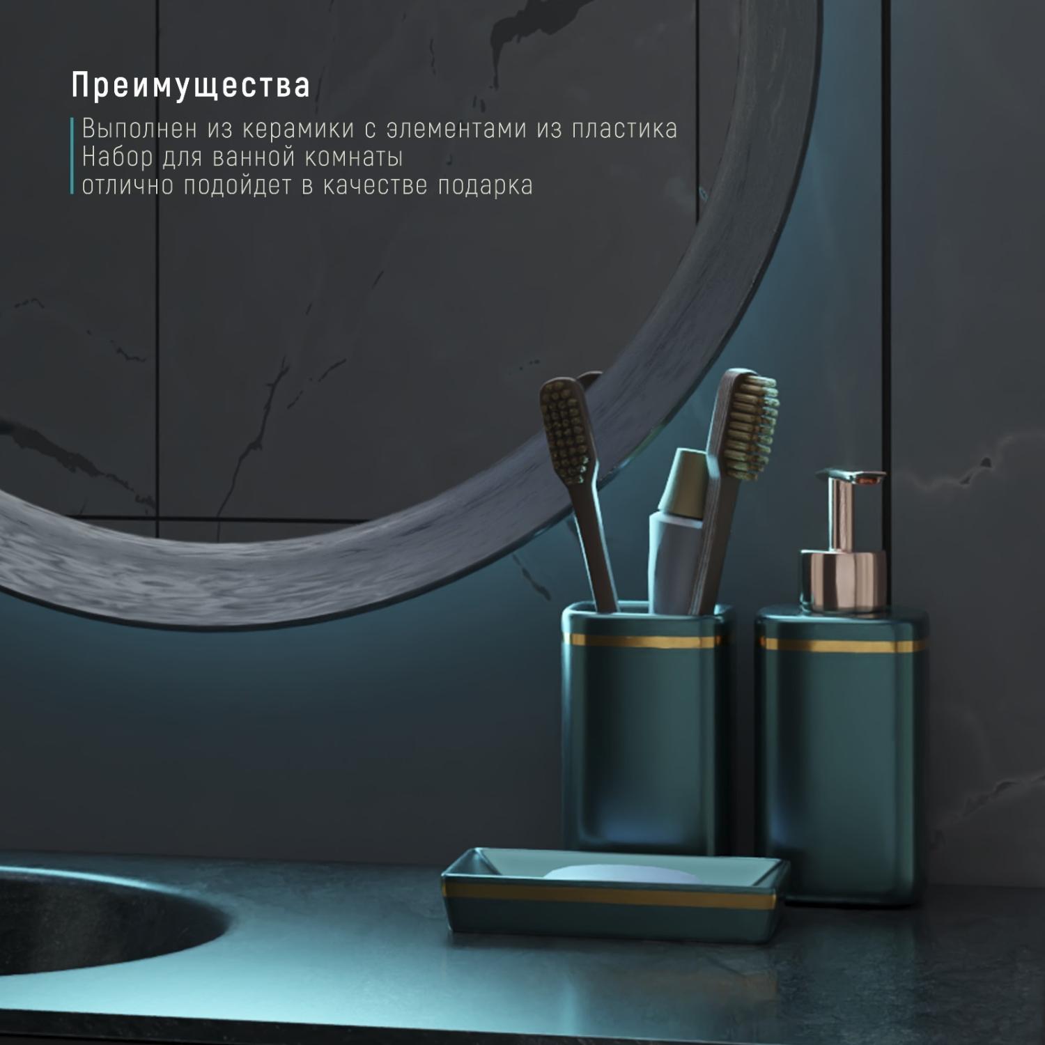 Набор аксессуаров организует пространство и станет стильным украшением Вашей ванной комнаты. За счет сдержанного дизайна данный керамический набор в ванную подойдет к любому дизайну ванной комнаты. Набор состоит из 3 предметов: дозатор, мыльница, стакан.