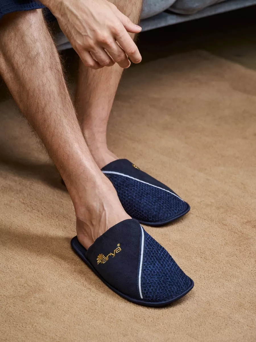 Тапочки Arya Мужские Mes выполнены из полиэстера. Внутренняя часть выполнена из мягкого материала. Тапочки подойдут настоящим ценителям домашнего уюта. Благодаря продуманной специальной форме они закрывают всю ступню практически до пяток. Подошва изготовлена из гибкой резины с рифлением.