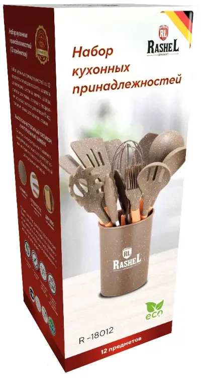 Набор кухонных принадлежностей ТМ Rashel станет незаменимым помощником для приготовлении пищи. Для изготовления набора используются только высококачественные материалы, поэтому в нем нет вредных токсинов.