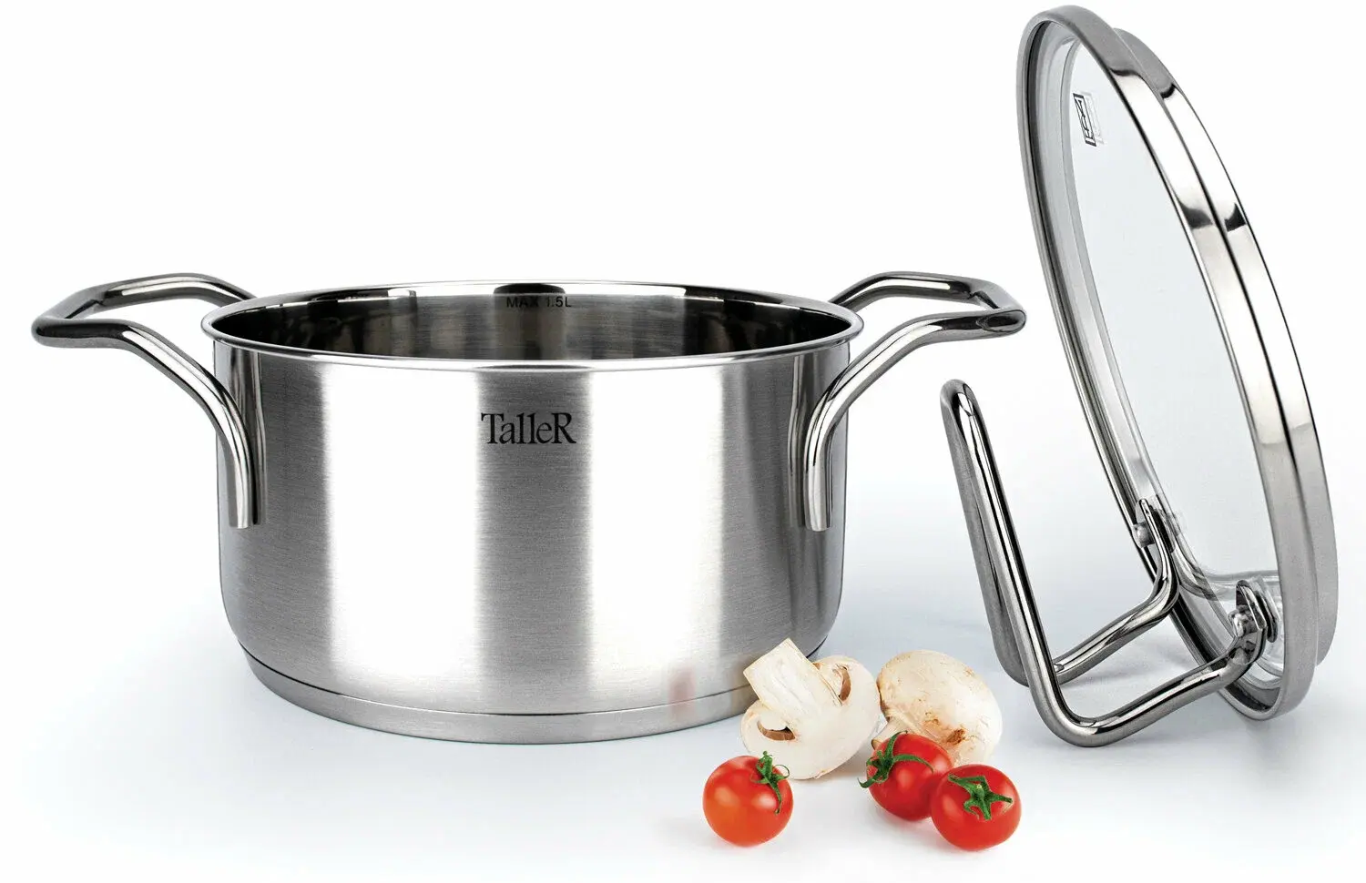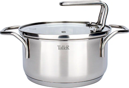 Кастрюля выполнена из нержавеющей стали - 18/10. Капсулированное дно для равномерного распределения тепла. Полировка внешняя - матовая, внутренняя - матовая. Есть отметки литража.