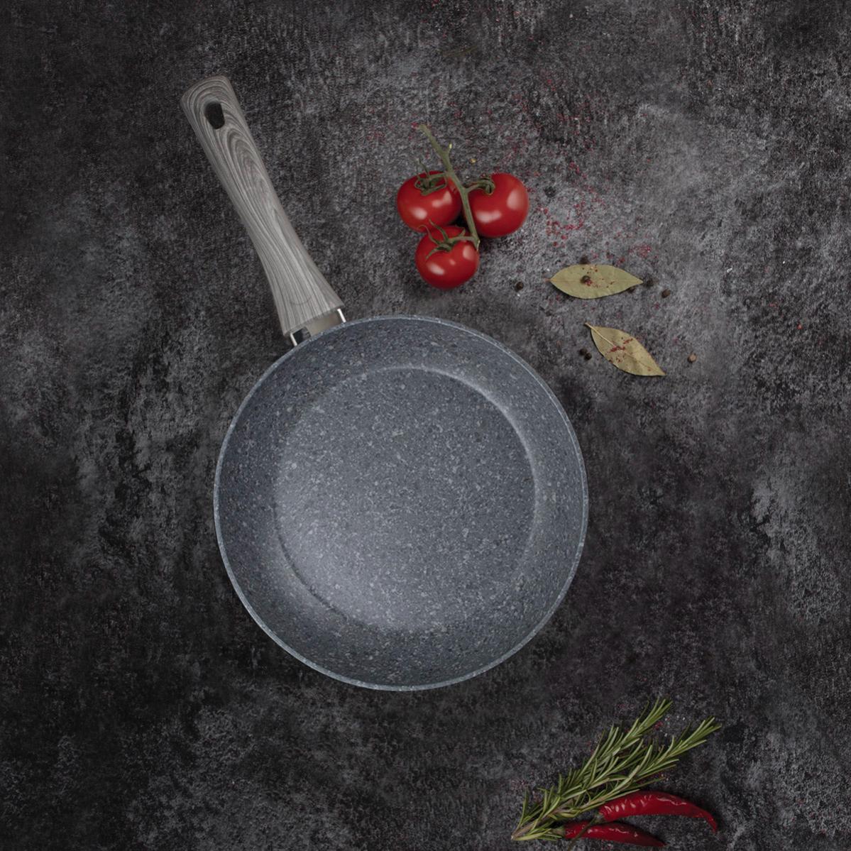 Трехслойное антипригарное покрытие не содержит PFOA и позволяет готовить пищу с минимальным количеством масла.