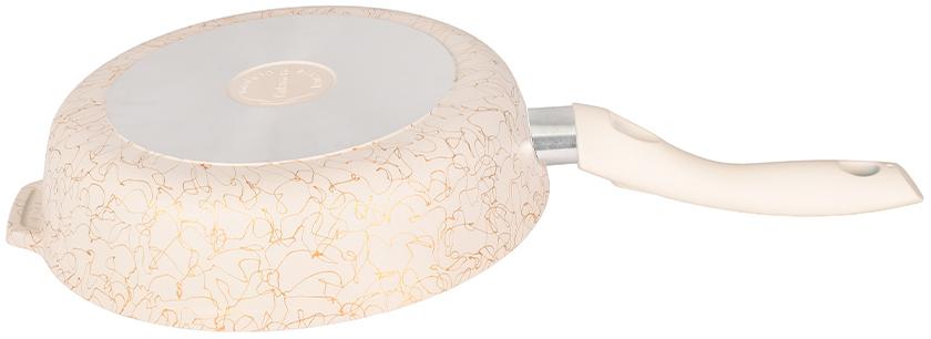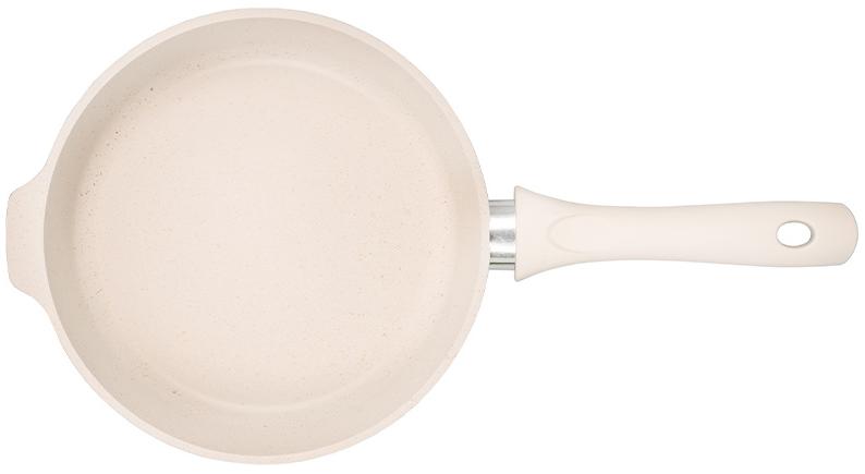 Сковорода Kukmara с антипригарным покрытием имеет проточенное дно, которое обеспечивает максимальное прилегание дна посуды к плите для более быстрого и равномерного нагрева.