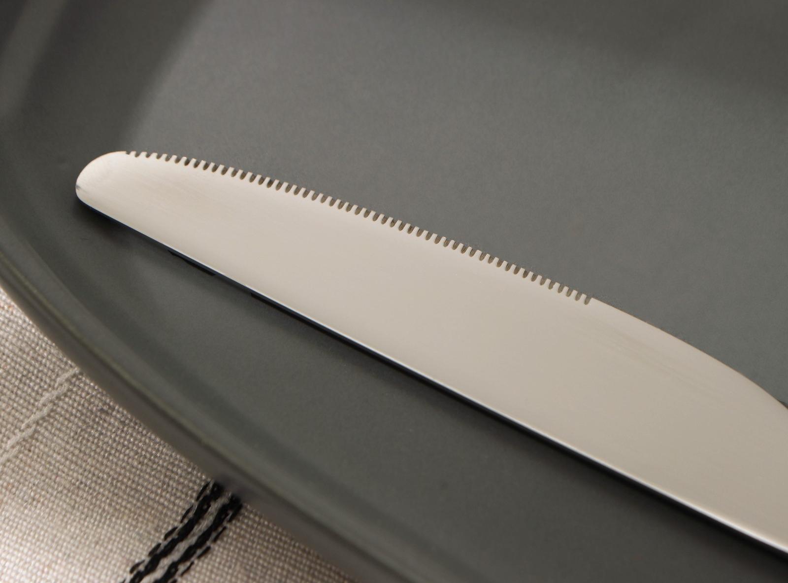 Нож столовый Magistro «Лин» выполнен в серебряном цвете из нержавеющей стали.